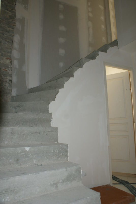 Les escaliers en béton sont réalisés sur mesure, dans ce cas l’épure (tracé) est établie dans notre bureau d’étude et réalisée ensuite sur le chantier. La configuration d’un escalier n’a pour limites que l’imagination de son concepteur et la conformation de son utilisateur.