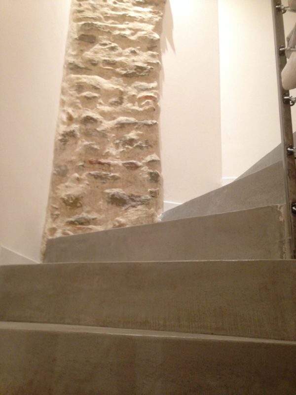 L’escalier est réalisé en béton armé puis recouvert de pierres de taille. Plusieurs coloris de pierres sont possibles.